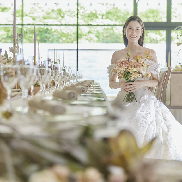 伝統ある京都、その繊細な美へのこだわりを形にした華やかなバンケット「AYANE(絢音)」。晴れの日にふさわしい上質感が、おふたりの特別な一日を鮮やかに彩ります。