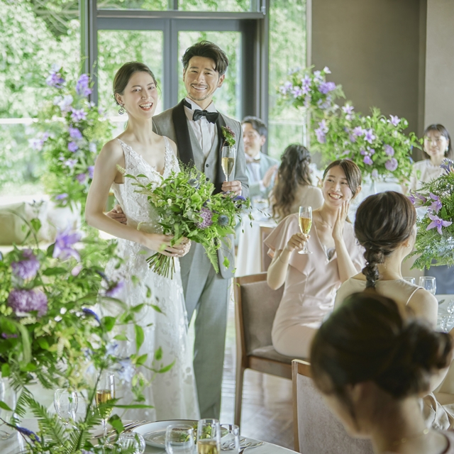緑豊かなロケーションが贅沢なバンケット「HARUKA(遥)」。日常では味わえないくつろぎと洗練を兼ね備えた、最高のパーティーをお愉しみください。