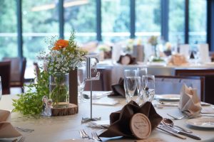 写真以外にもテーブルクロスをネイビーや、ワインレッド等