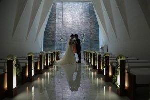 バージンロードにおふたりのお姿が映し出され、とても幻想的です☆