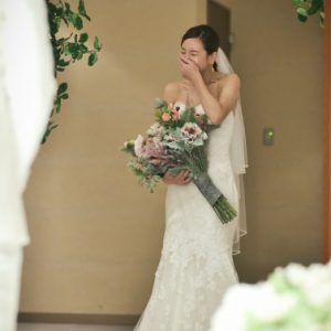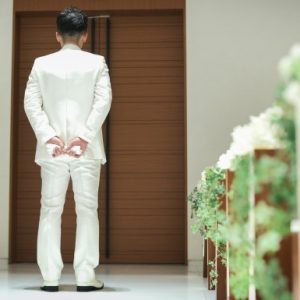 新婦様のご入場をドキドキしながら待たれる新郎様