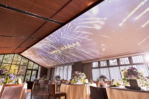 この演出をバックに新郎新婦様がゲストの皆さまにご挨拶されるシ