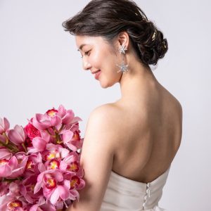 アクセサリーやヘアアレンジなど小物の合わせ方で随分と雰囲気が変わるんです