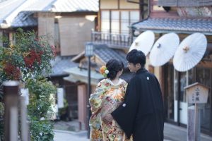 KOTOWAからタクシーで10分ほどの距離にある八坂の塔から撮影がスタートし