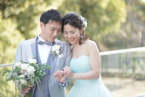 このように緑をバックに新郎新婦様の一生の思い出を・・