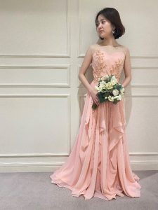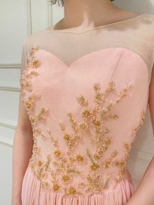 ドレスのお色と同じベビーピンクのビーズとアクセントのゴールドビーズで、
