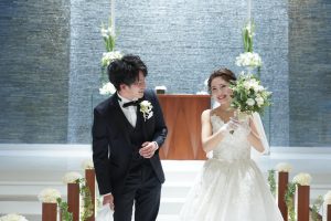 真っ白な壁はレフ版のようにおふたりを輝かせ