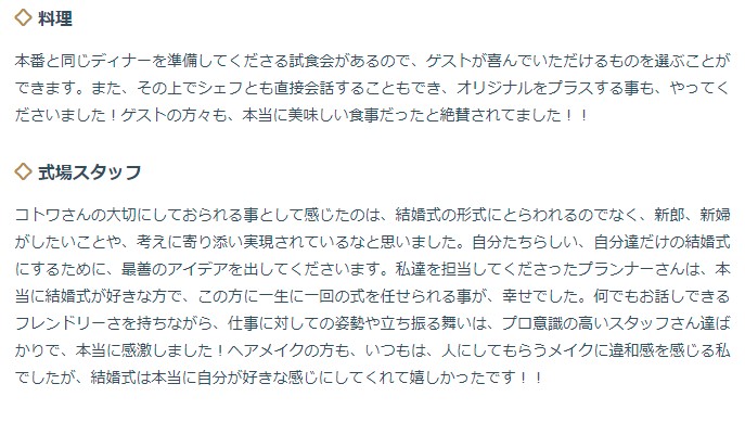 本日は結婚式専門の口コミ投稿サイトに集まっているKOTOWAの口コミをご紹介させていただきます!