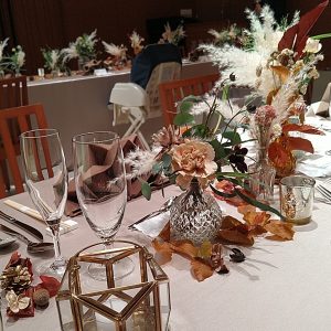 衣裳や引出物などのアイテムや装花も含めたコーディネート展示