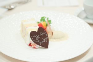 ゲスト1人1人のお名前とThank youと書かれたプレートをデザートとともに提供。