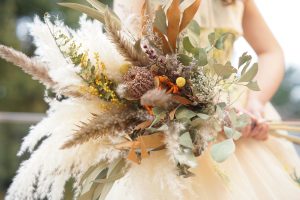 流行りのパンパスを取り入れドレスをより引き立てるブーケ
