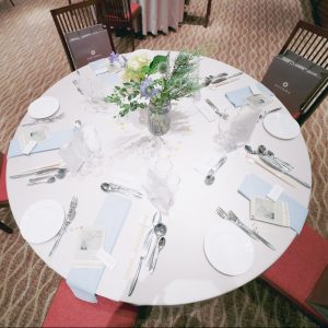会場の雰囲気はクロス、ナフキン、装花で変わります