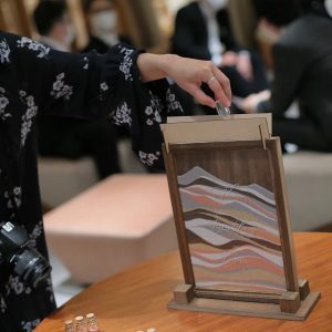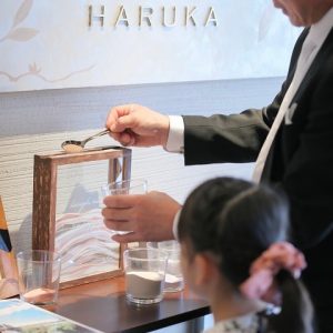 受付時にゲストの皆様に色のついた砂を入れていただきます。