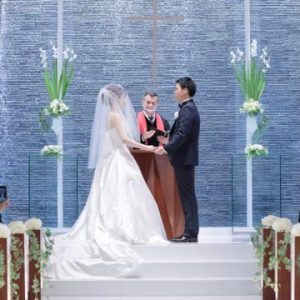 牧師先生の祝福を受けながら厳かに愛を誓います。