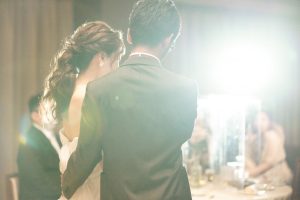 こちらのお客様はお背中が広めに空いた大人っぽいドレスに低めのポニーテールを合わされました。