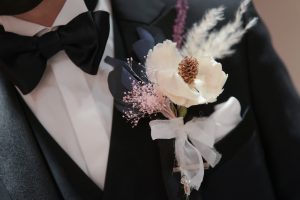 まず皆様は新郎様の胸元にある花飾り「ブートニア」