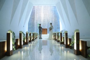 KOTOWAのチャペルは真っ白なチャペルの真ん中に迫力のある滝が流れていますので、