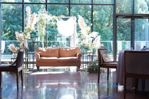 HARUKAのグリーンをバックに、ソファ高砂は本当にお洒落ですよね。