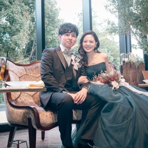 はやりのダスティカラーのカラードレスもトレンド感がありおすすめです!