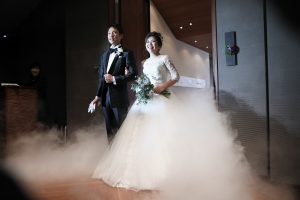 スモークでいっぱいの中から、光り輝くおふたりが入場というシーンになります