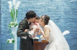 お子様のほっぺたにパパとママからの愛情こもった誓いのキス!