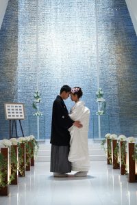 滝が流れるチャペルは、ドレスはもちろん、白無垢や紋付袴もとても美しくお写真に残ります。