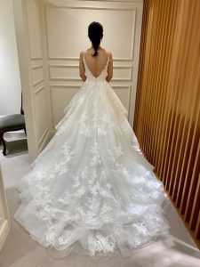 たっぷりのレースで仕立てられたドレスはまさに特別な一日にふさわしい一着です。