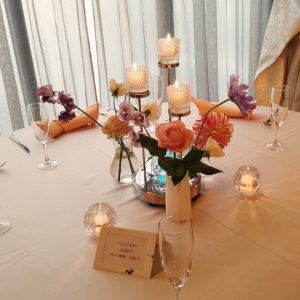 ゲスト卓のお花も和の雰囲気でグリーンのさし色が素敵です!