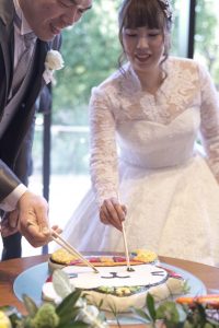 結婚式でケーキ入刀のシーンは、初めての共同作業ということもあり、
