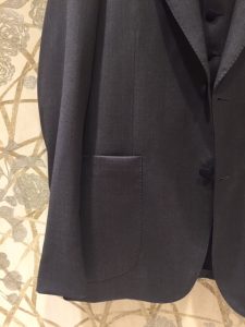 ジャケットの着丈は若干短めに設定し、パッチポケットのトレンドを反映しています。