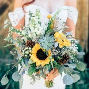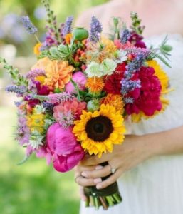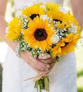 ご新婦様の持たれるブーケにだけひまわりを入れて特別に、、、というのも素敵です。