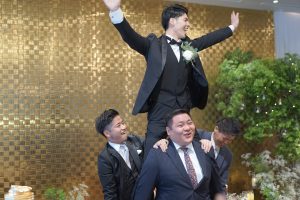 背の高いご新郎様は騎馬戦ではいつも支え役だったそう。