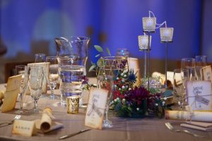 ゲストのテーブルにそれぞれキャンドルを置くと会場の中を