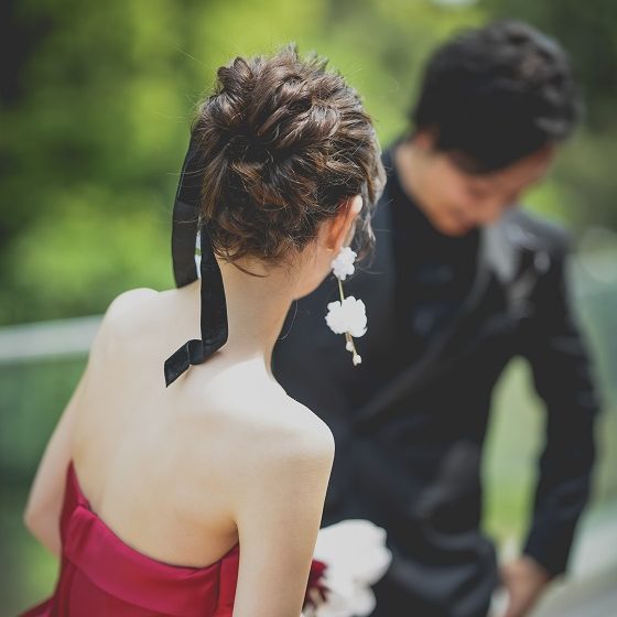 ベロアのリボンを使用した大人可愛いアップスタイル