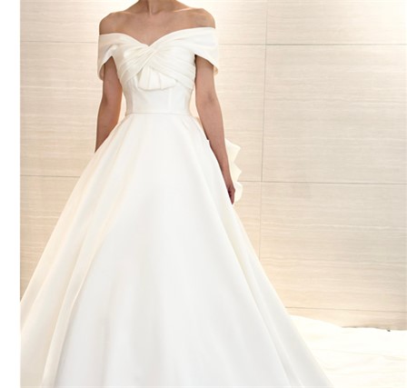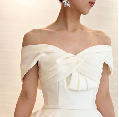 後ろにかけてなだらかに幅を広げたオフショルダーや、