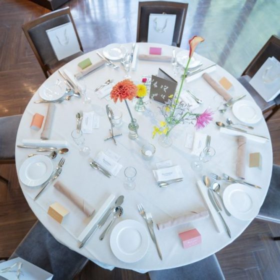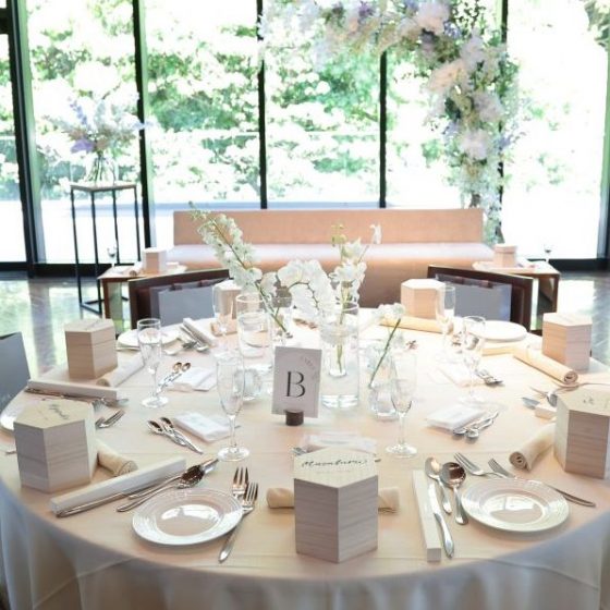 何色のクロスを使用し、花をどんなふうに飾り、席札をどうするのかによってテーブルの印象がガラッと変わります。