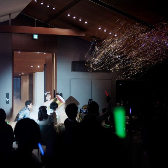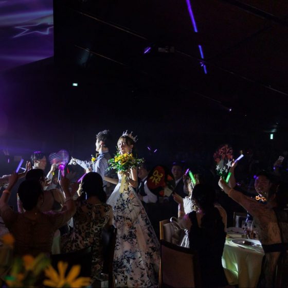 ゲストの皆様がペンライトを振って新郎新婦様を迎えてくださる一体感のある演出です