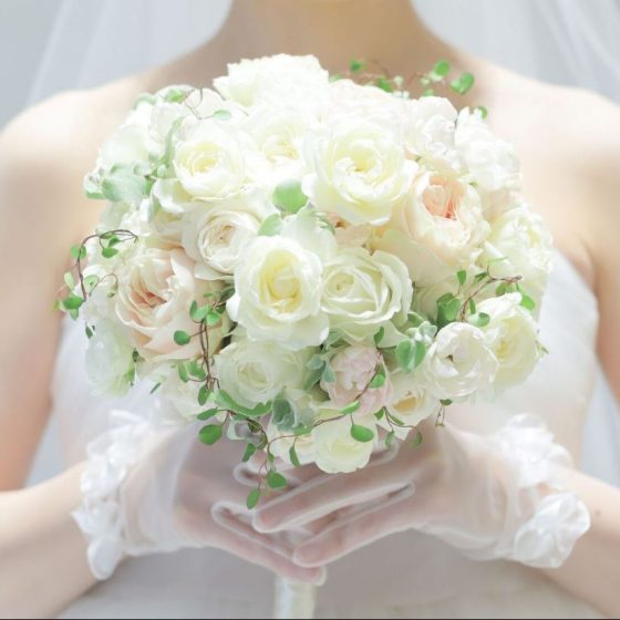 純白のドレスに白を合わせるのももちろん素敵ですが