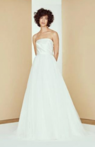 モダンでクリーンなデザインに優しさや柔らかさをプラスしており、カジュアル・アットホームなお式に是非お召し頂きたい1着です。