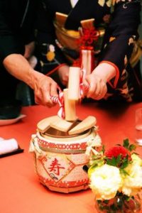 結びにお色直しで和装をお召しになった際はとくに!行っていただくとたのしい内容が【ミニ鏡開きラウンド】です