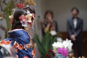 こちらはご新婦様のご希望スタイルでお花をたくさんつけても映えるヘアスタイルです!