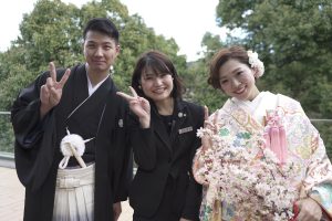 和装で持たれた桜ブーケ・・・おしゃれなおふたりにとってもお似合いです!!