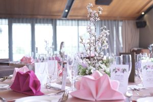 ゲスト皆様のテーブルにも大小それぞれの桜の木を置き