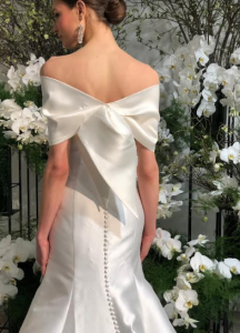 光沢の美しいミカドサテンを使用したシンプルなマーメイドドレス。