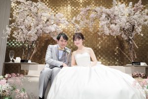 こちら 桜のメインバックツリーを装飾したとっても素敵なおふたりです♡