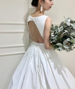 シンプルながら深くあいたVネックにバックスタイルがゲストの皆様の目を引きます。