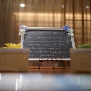 KOTOWA 京都 八坂のラウンジには新郎新婦様がおふたりらしく飾り付けをしていただけるウェルカムスペースがございます