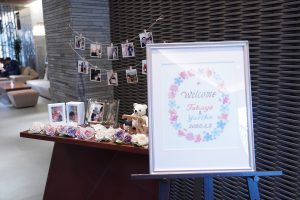 ラウンジに足を踏み入れた瞬間、新郎新婦様のお写真やお気に入りのアイテムに囲まれ、一気におふたりらしさに包まれる空間が広がります!