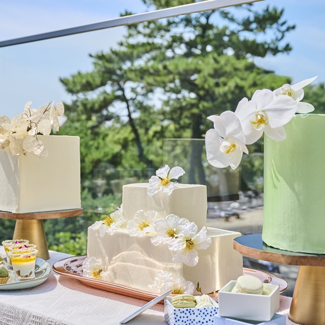 - パーティーを華やかに盛り上げ、素敵な記憶として心に残るウエディングケーキ。KOTOWA 京都 八坂では、おふたりのお話を伺いながら、想いを形にしたオリジナルのウエディングケーキをお作りしています。