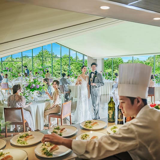 1.5次会や2次会の会費制パーティーやお祝いパーティーなど、開放的なガーデンやテラスで安心してゲストと自由に過ごせるパーティーを楽しみませんか。おふたりのイメージに合わせたプランをご提案いたします。